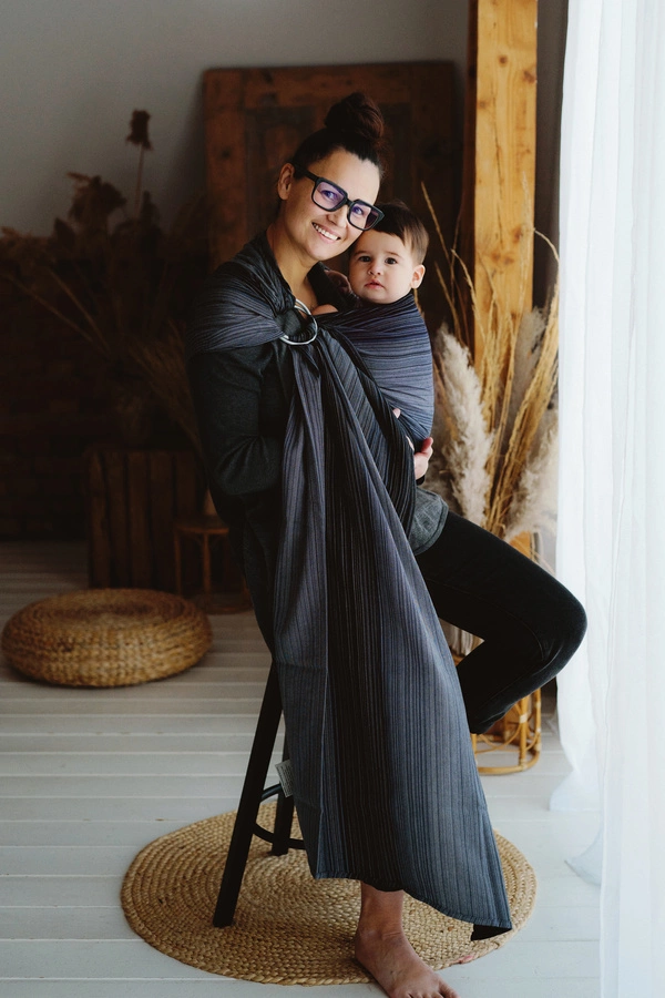 The Hematite ring sling is a practical and elegant solution for carrying your baby from the very first days of life. Made of soft, breathable combed cotton and woven in a broken twill weave, this sling offers optimal support and comfort. It’s soft right out of the box – no breaking in needed – and features two differently colored edges for easier tightening and adjustment, especially for beginners.