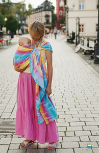 TAGS: babywearing, newborn layette, newborn baby gift, baby shower gift, multicolour ring sling, jacquard ring sling, baby ring sling, jacquard weave, first ring sling, baby wrap carrier