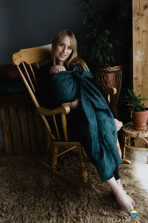 The Ocean Wildness ring sling in jacquard weave will work perfectly for carrying babies and toddlers. Fabric is soft and the pattern gives it a distinctive texture that makes it hold the tying better and does not loosen. Ring Slings are quick to put on, making them accessible to every parent. Simply pull the fabric through the sewn-in rings as instructed, tighten accordingly and you are ready to go! When folded, ring slings take up little space, so they are easy to carry and store, which is important, especially when travelling.