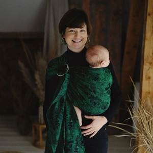 A ring sling in size M (approximately 2 meters long) is a quick and easy solution that works perfectly when you need an “emergency” carry option and are wondering what to use to quickly carry your baby. Thanks to its two sturdy rings, putting it on takes just a moment – simply thread the fabric through the rings and pull it to adjust the fit to your body.
