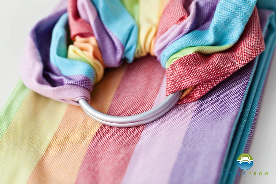 TAGS : portage, layette nouveau-né, cadeau nouveau-né, cadeau baby shower, Le sling sans nœuds, le sling arc-en-ciel, le sling bambou, écharpe à anneau